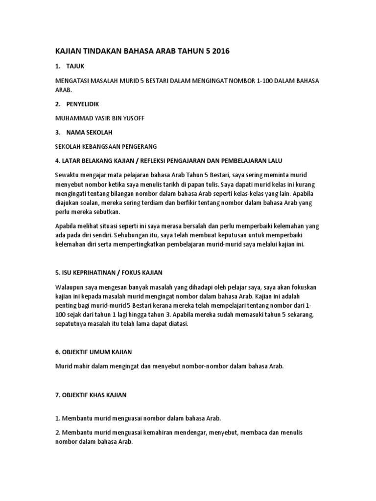 Kajian Tindakan Bahasa Arab Tahun 1 2016 Pdf